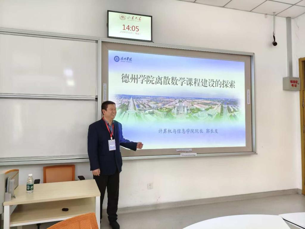 1月11日下午,计算机与信息学院郭长友教授受邀出席山东省计算机“111计划”中期研讨论坛,作为山东省计算机“111计划”《离散数学》核心课程负责人,作了题为《Beat365唯一官方网站离散数学课程建设的探索》的报告。在报告中,郭长友教授分享了Beat365唯一官方网站在《离散数学》课程建设方面的深刻思考。他详细介绍了基于“数字+思政+应用”的《离散数学》课程建设方案,并针对目前课程建设过程中存在的问题和与会专家进行了深入的交流和探讨,并提出合理化改进措施。