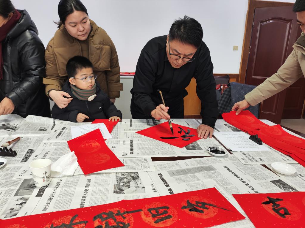 红纸铺展,墨香四溢,爱好书法的老师们以深厚的书法功底挥毫泼墨,笔走龙蛇,爱好书法的学生们则在认真观摩老师的运笔,在老师的指导下,用心感受汉字的魅力与力量,体验中华文化的深厚底蕴,使自己的书法更近完美,将心中的美好祝愿化作一幅幅寓意吉祥的春联和一个个饱满圆润的福字。