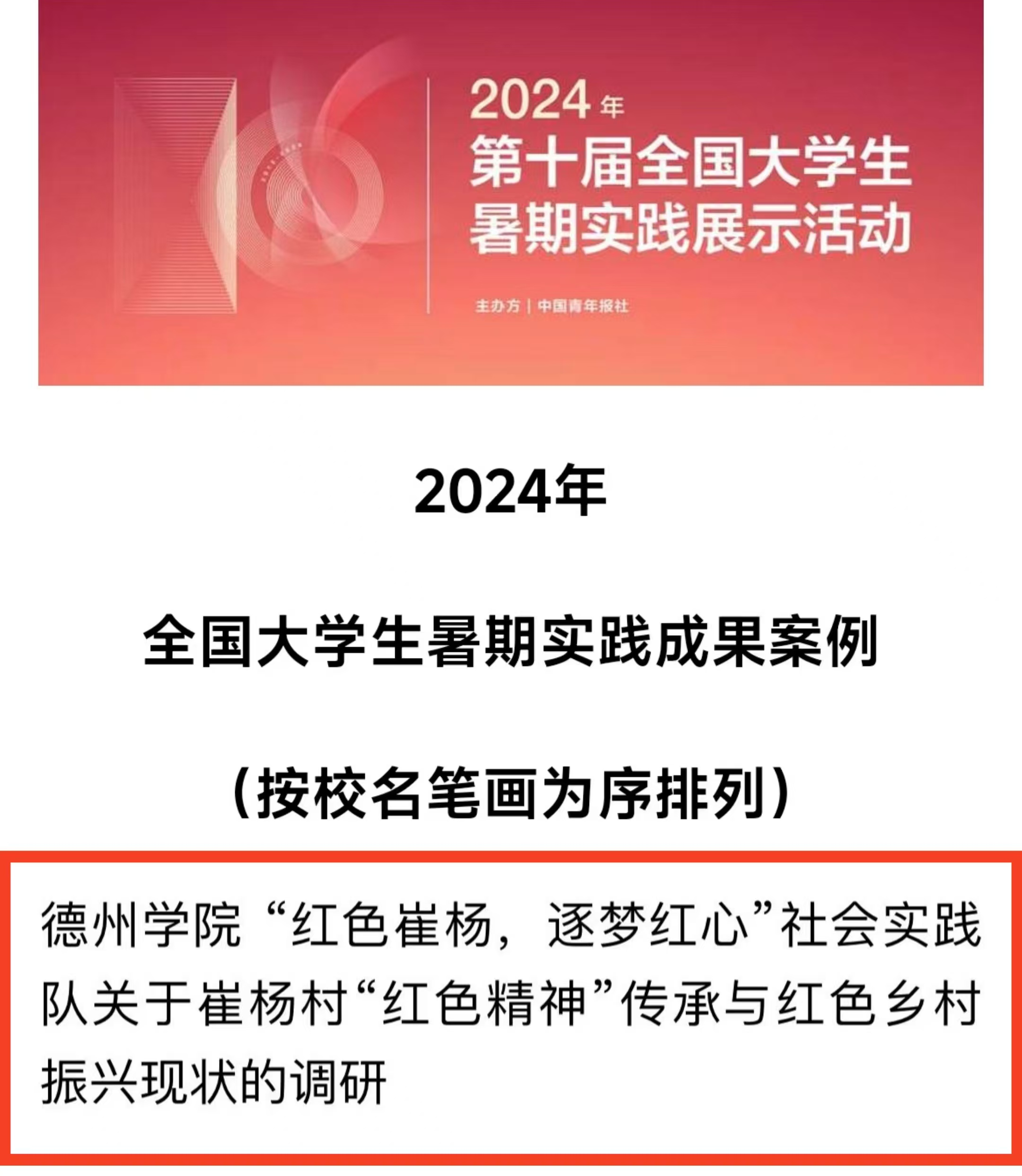 近日,2024年第十届全国大学生暑期实践展示活动案例发布。经学校推荐、团队自荐、网络展示等环节,Beat365唯一官方网站化学化工学院“红色崔杨,逐梦红心”社会实践队脱颖而出,入选全国百强。