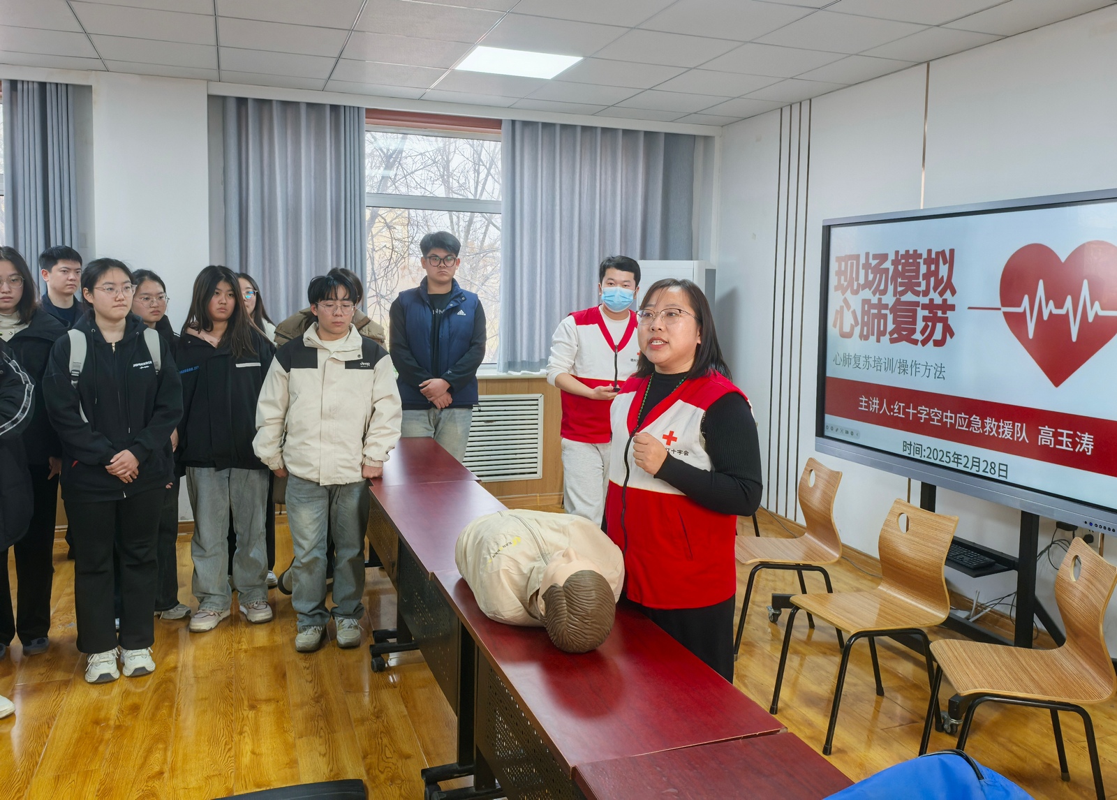 娄斌以《反诈生存指南:从萌新到王者的大学生必修课》为题,首先通过大数据分析揭示了校园诈骗的严峻形势:近三年大学生受诈案件数量激增,追损率较低。然后他重点解析了刷单返利、冒充熟人、虚假购物、校园贷、购买游戏装备等主要校园诈骗类型,并且通过真实案例纪录片,生动还原了受诈学生的心理变化轨迹。最后,娄警官现场传授了“四不一要”的防诈口诀:不轻信陌生信息、不泄漏个人信息、不随意转账汇款、不参与刷单行为,特别强调要筑牢“克服贪念-保持警惕-多方核实”的心理防线。红十字救援队志愿者采用情景模拟教学法,现场演示心肺复苏的标准操作流程及关键技术要点。在专家全程指导下,同学们通过沉浸式实操演练掌握技术要领,结合即时反馈的精准指导,将理论知识转化为急救实战技能,实现了从急救知识吸收到技能应用的提升。