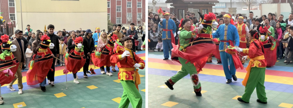 在德城区新湖街道顺城社区德州万豪幼儿园,留学生们在“黄河大集暨非遗文化进校园”活动中观赏了非遗项目跑驴和秧歌的展演。欢快的锣鼓声、灵动诙谐的跑驴表演、热情洋溢的秧歌舞步,让留学生们沉浸于中国民间艺术的活力之中。来自巴基斯坦的留学生乐洋感叹:“演员们的表情和动作充满感染力,让我瞬间爱上了这种充满欢乐的传统文化!”
