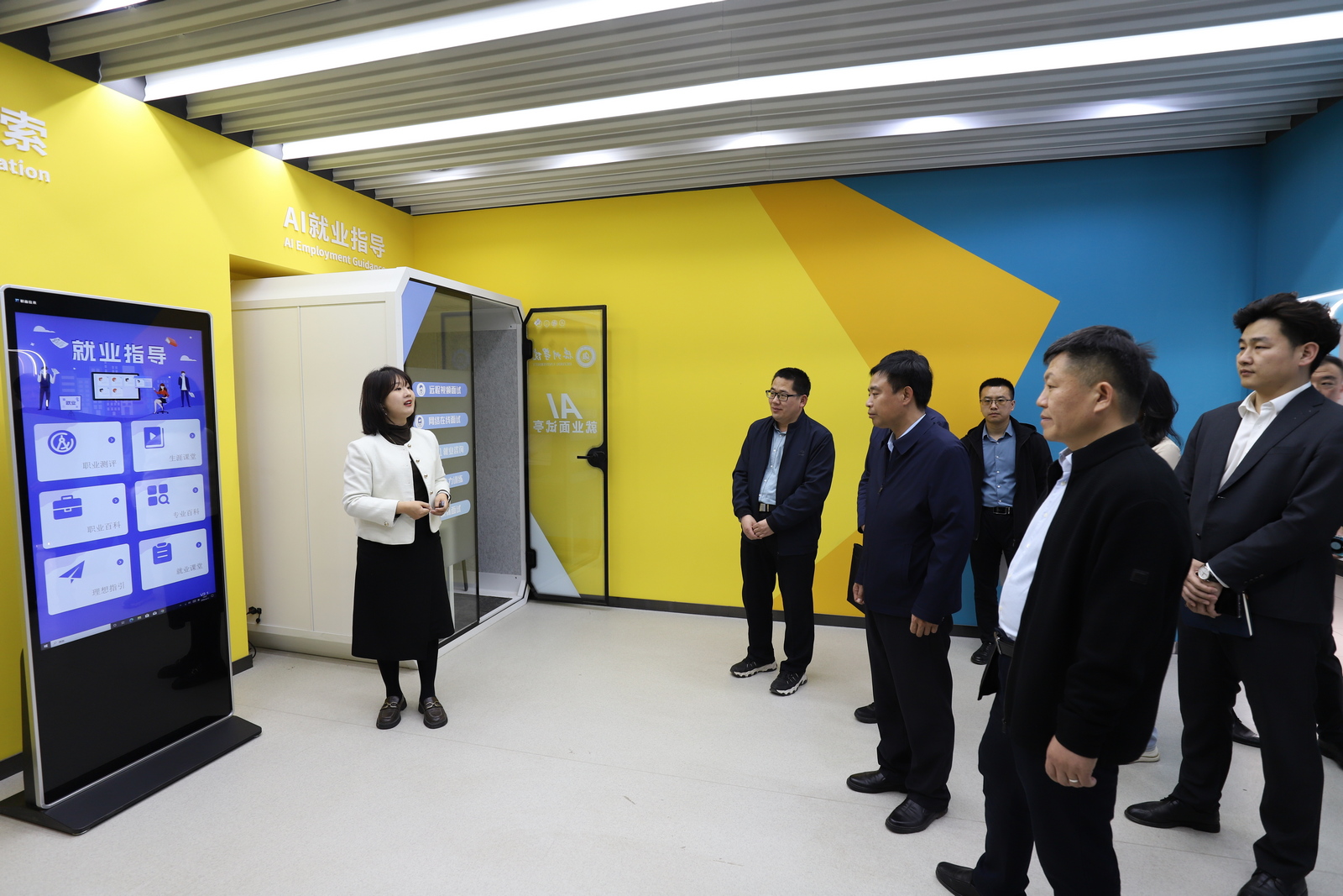 期间,来访人员共同参观了大学生就业创业赋能中心。
