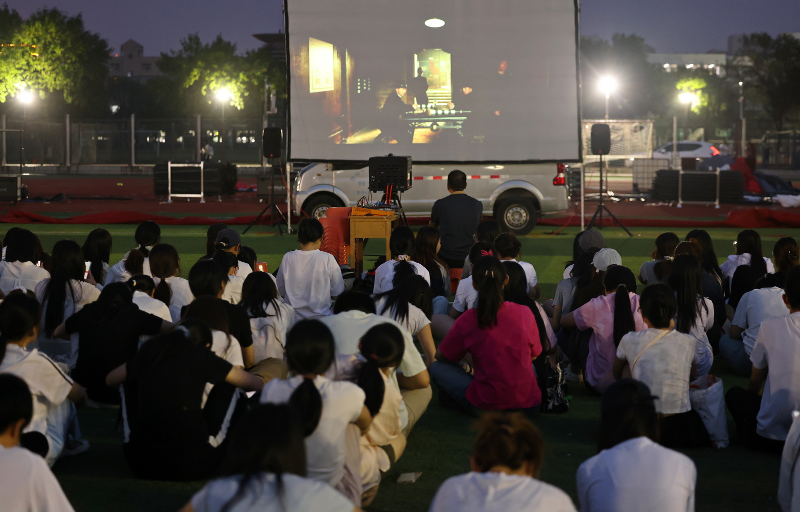 为深入贯彻落实习近平总书记关于青年工作的重要思想,坚持党管青年工作原则,落实党建带团建制度机制,赓续红色血脉,创新思想政治教育载体,打造沉浸式、体验式思政育人新模式,6月20日,国防教育题材电影《一生交给党》在学校北操场放映。