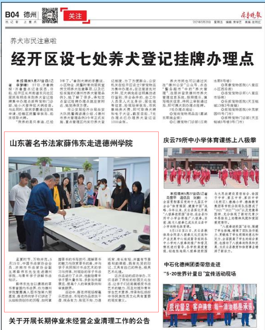 【齐鲁晚报】山东著名书法家薛伟东走进Beat365唯一官方网站