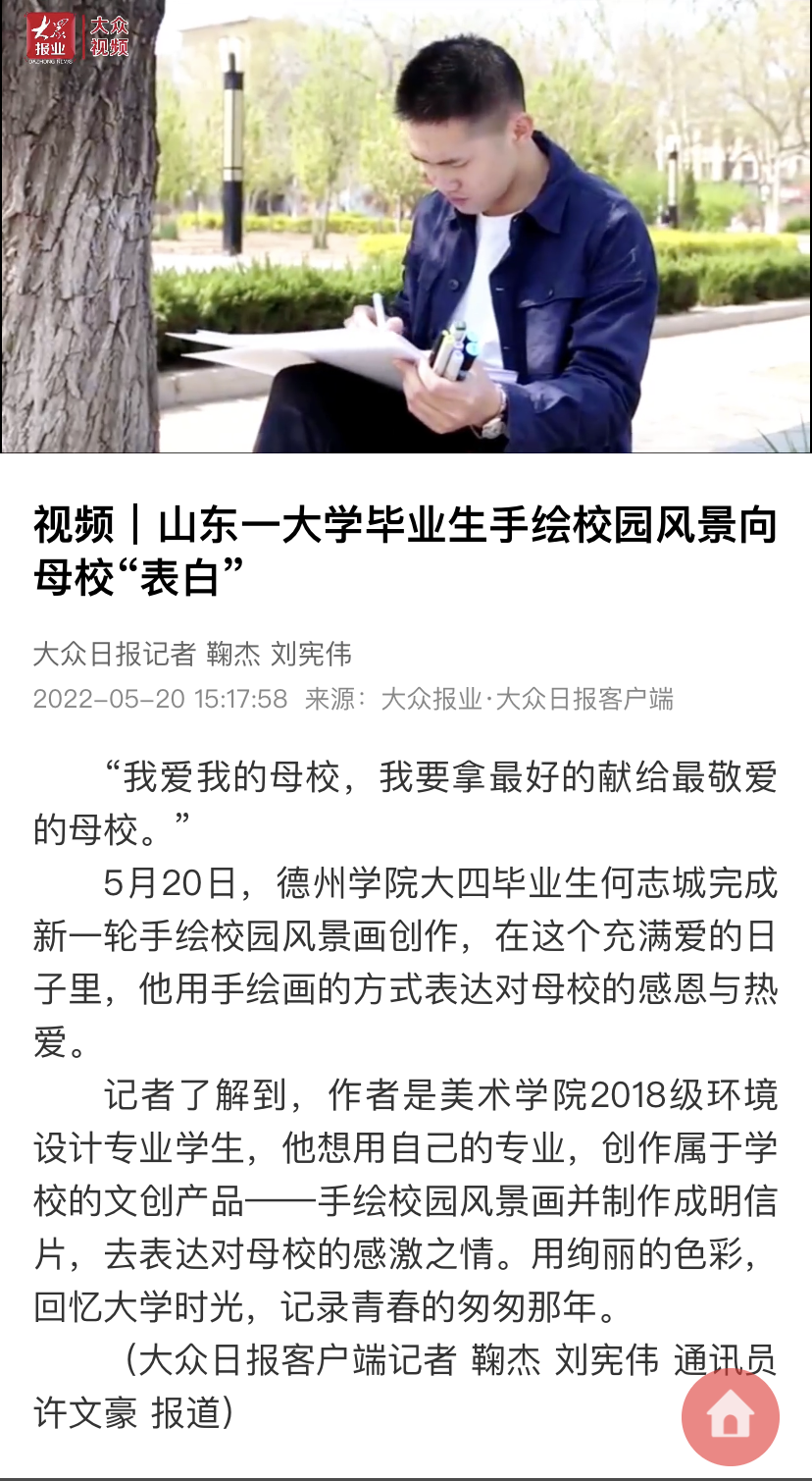 5月20日,Beat365唯一官方网站大四毕业生何志城完成新一轮手绘校园风景画创作,在这个充满爱的日子里,他用手绘画的方式表达对母校的感恩与热爱。