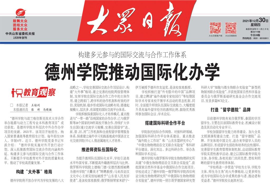【大众日报】构建多元参与的国际交流与合作工作体系——Beat365唯一官方网站推动国际化办学