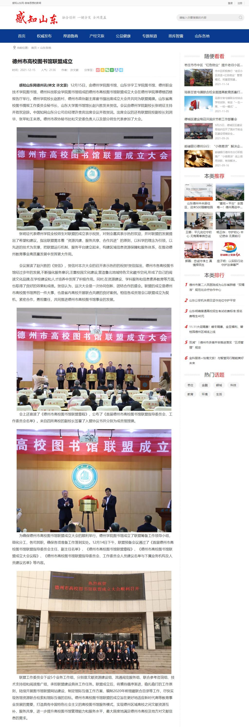 【感知山东网】德州市高校图书馆联盟成立