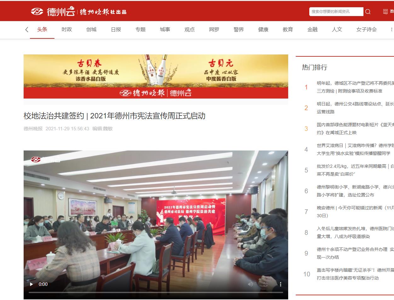 【德州晚报】校地法治共建签约 | 2021年德州市宪法宣传周正式启动