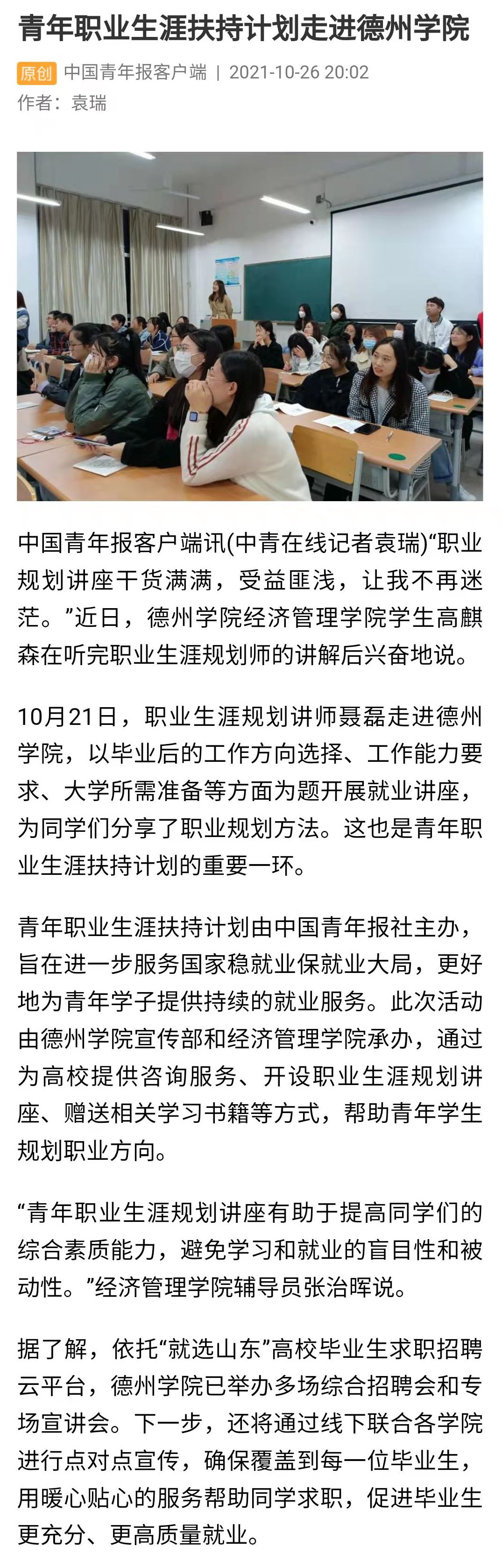 【中国青年报】青年职业生涯扶持计划走进Beat365唯一官方网站