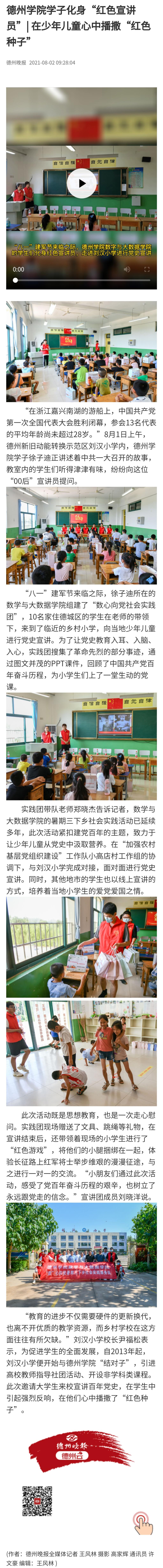 【德州晚报】Beat365唯一官方网站学子化身“红色宣讲员”| 在少年儿童心中播撒“红色种子”