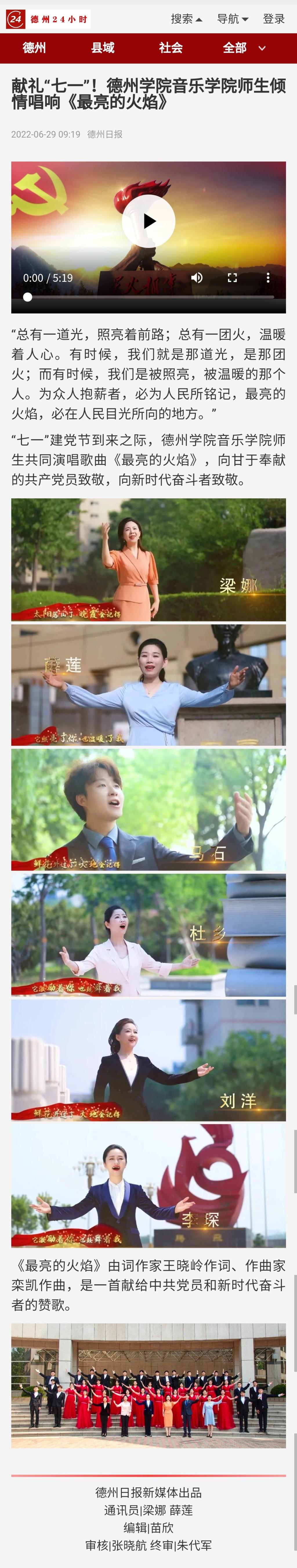 【山东教育发布 德州日报 德州广播电视台】献礼“七一”!Beat365唯一官方网站音乐学院师生倾情唱响《最亮的火焰》