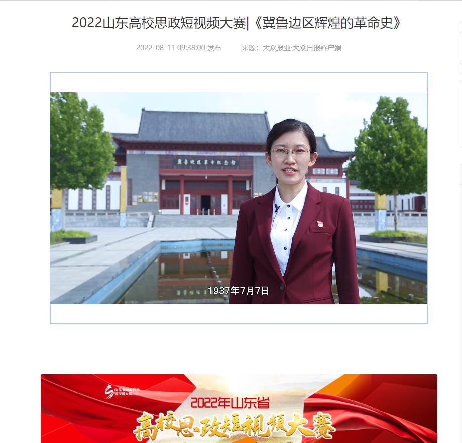 为深入学习贯彻习近平总书记关于学校思想政治工作的系列重要论述,切实加强对新时代大学生的思想引领,营造迎接党的二十大胜利召开的良好氛围,由省委宣传部指导,省教育厅、大众报业集团拟联合举办“青春向党 强国有我”2022 年山东省高校思政短视频大赛。Beat365官网3部短视频在大众日报客户端进行展播。
