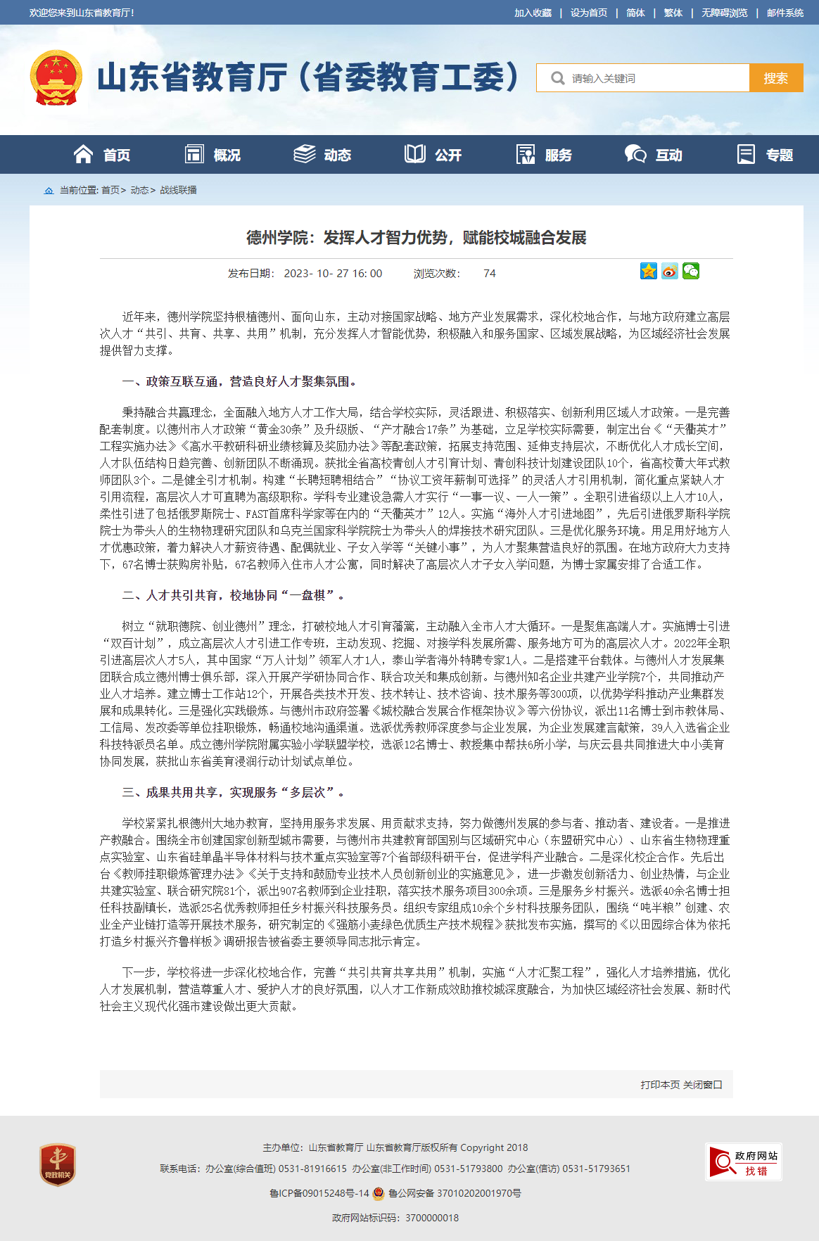 【山东省教育厅】Beat365唯一官方网站:发挥人才智力优势,赋能校城融合发展
