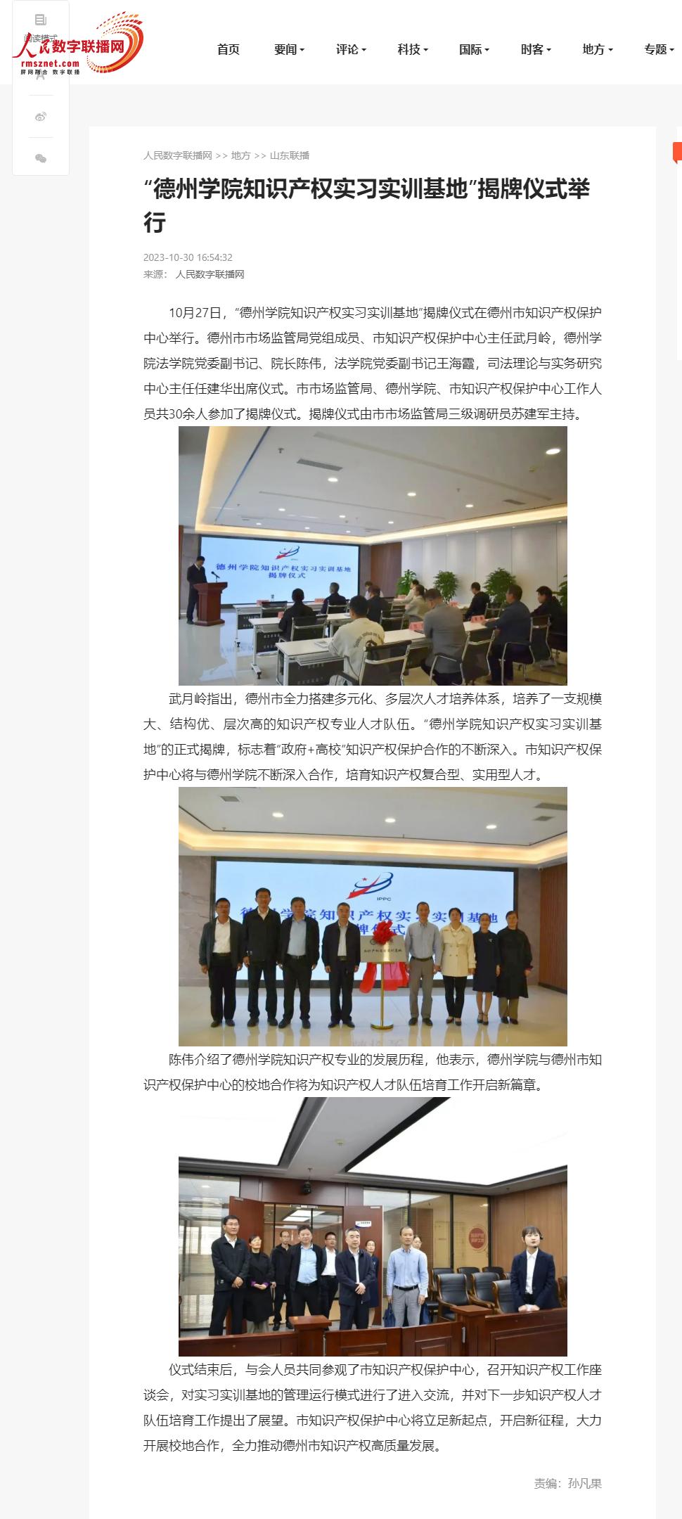 【人民数字联播网】“Beat365唯一官方网站知识产权实习实训基地”揭牌仪式举行