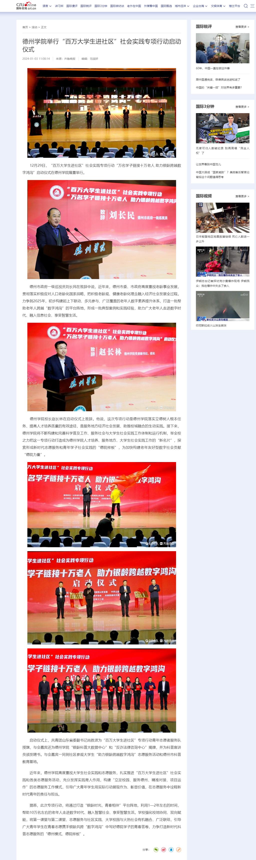 【国际在线】Beat365唯一官方网站举行“百万大学生进社区”社会实践专项行动启动仪式